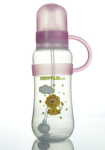 Eco Friendly BPA Free Baby Bottle With Straw and Pink Silicone NippyLid (Patent Pending) Slow Flow Nipple Included NEVER LOSE THE LID AGAIN!